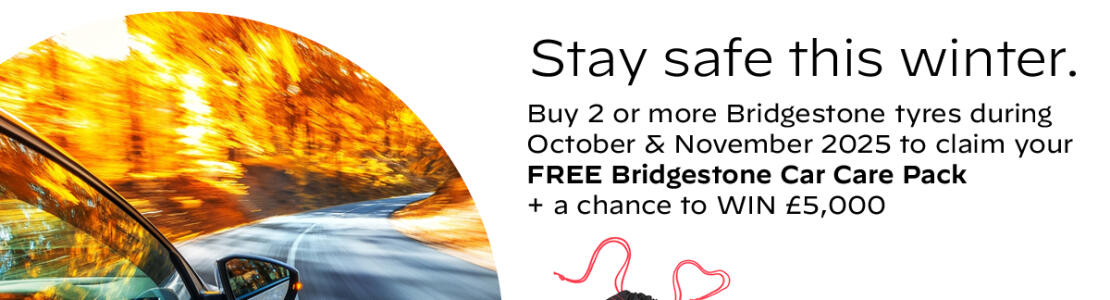 This October and November, Setyres is teaming up with Bridgestone to bring you an unbeatable offer - giving you the chance to win £5,000 cash and claim a FREE Bridgestone Car Care Pack when you purchase any two Bridgestone Car, Van or 4x4 tyres.
